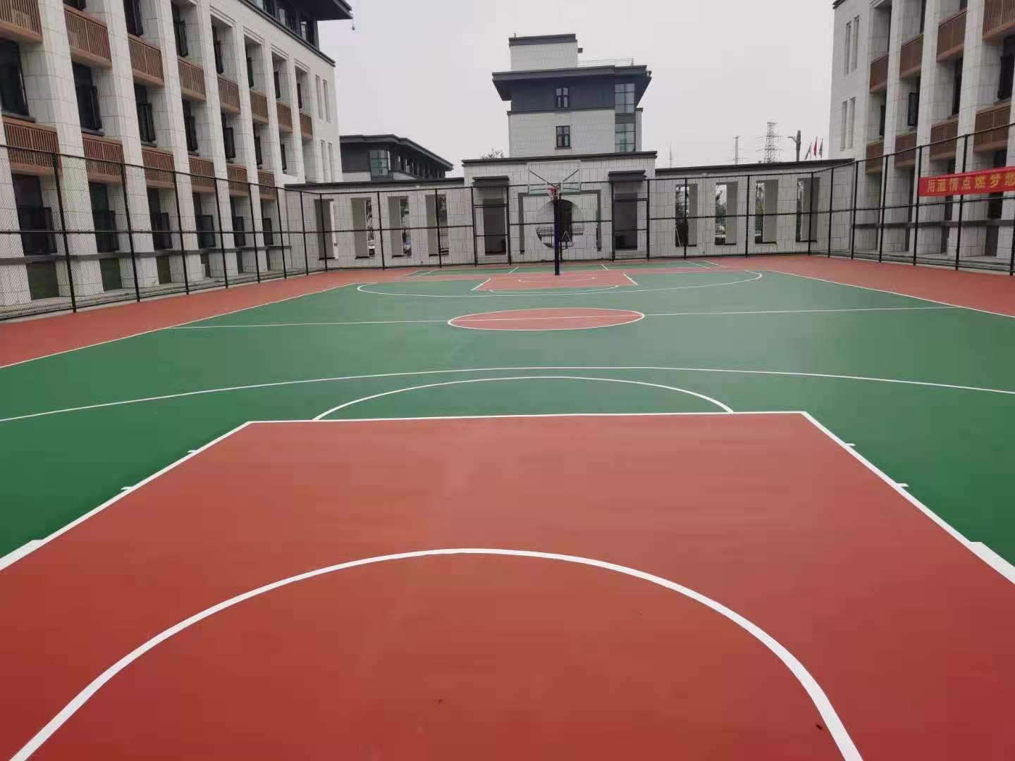 新天地漆業(yè)工程地下車庫(kù)籃球場(chǎng)彩色路面工程案例